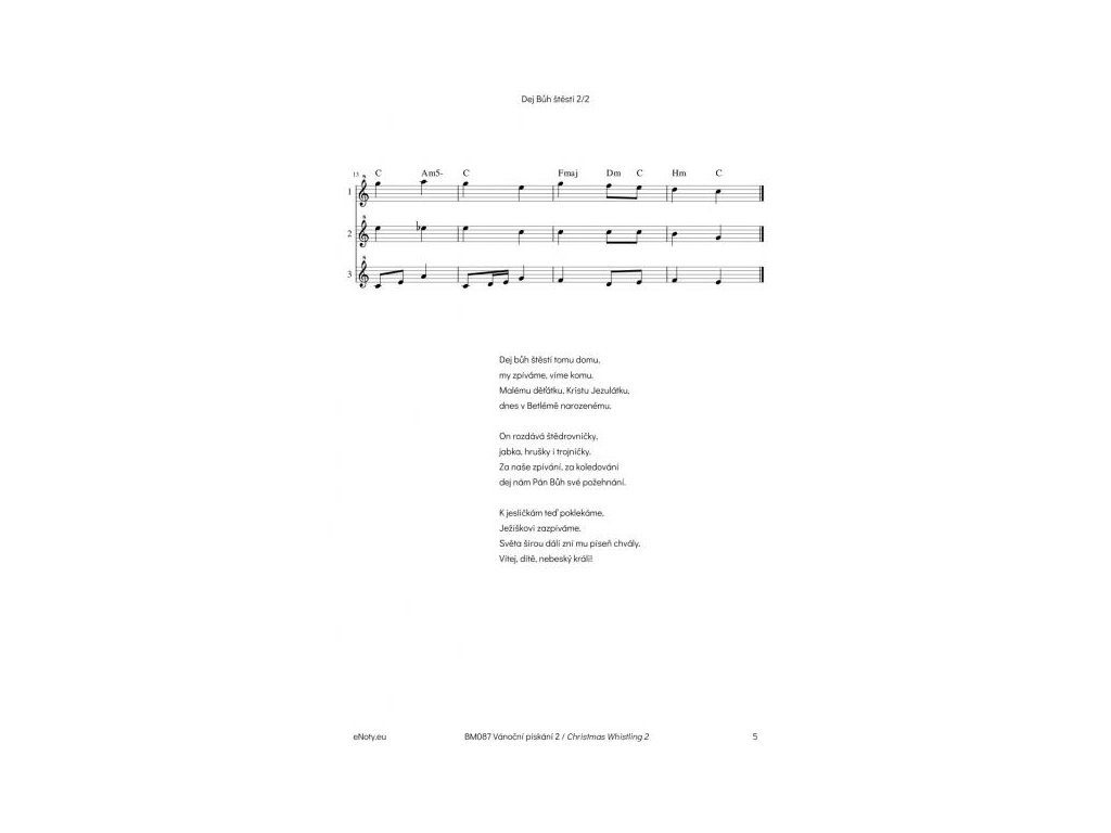 Vianočné pískanie 2 je kolekcia, ktorá Vám prináša ďalších desať známych a obľúbených českých vianočných kolied v jednoduchých trojhlasových úpravách pre súbor sopránových zobcových flautov. Všetky koledy v zošite sú doplnené o akordové značky pre prípadný sprievod na klavír, klávesy, gitaru a ďalšie sprievodné nástroje. Pri všetkých skladbách je uvedený aj text piesní.