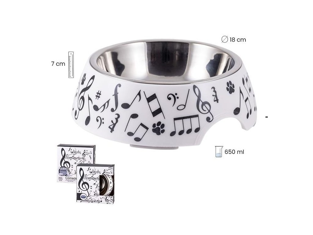 Veľké kŕmidlo pre domáce zvieratá s motívom hudobných symbolov.