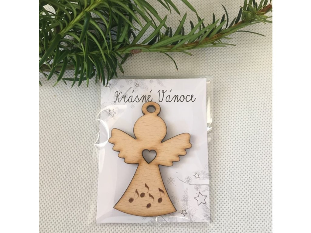 Drevená vianočná ozdoba s motívmi nôt, balená v celofánovom vrecku s nápisom Krásne Vianoce, je milým darčekom pre vašich blízkych, ktorí milujú hudbu.