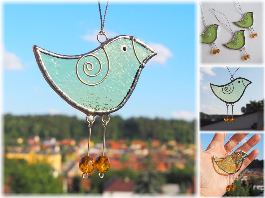 Vtáčik je ručne vyrobený z opálového skla, cínu a sklenených korálikov technikou Tiffany. Prefarbenie skla sa môže kus od kusu líšiť. Drobné rozdiely môžu byť aj vo farbe, príp. aj veľkosti korálikov.