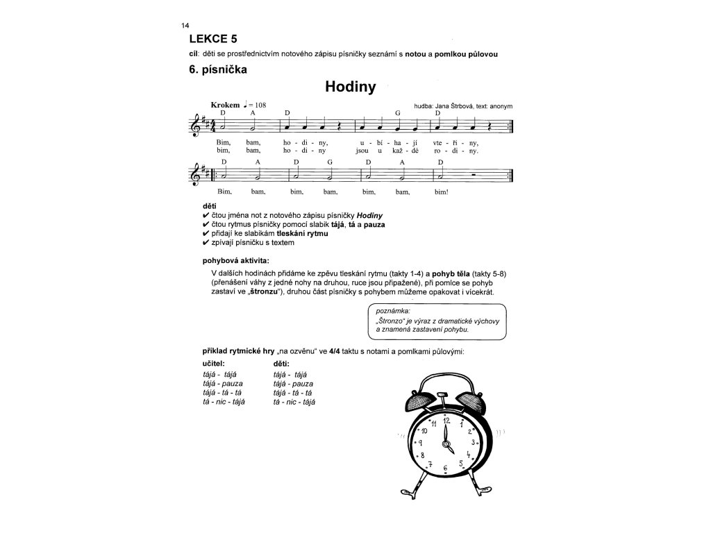 Výučba hudobnej teórie sa opiera o jednoduché didaktické a autorské piesne, medzi ktoré sú vložené známe aj menej známe piesne ľudové. Zošit dopĺňajú pôvabné ilustrácie Karin Skálové, ktoré budú deti rady vyfarbovať.