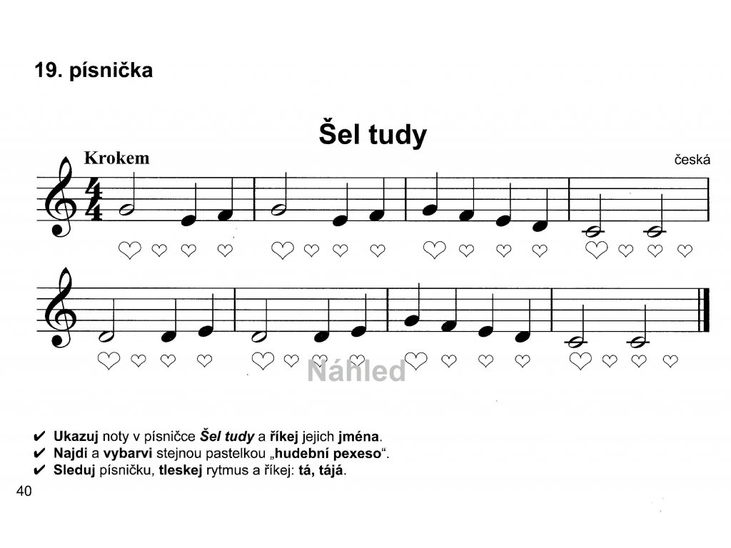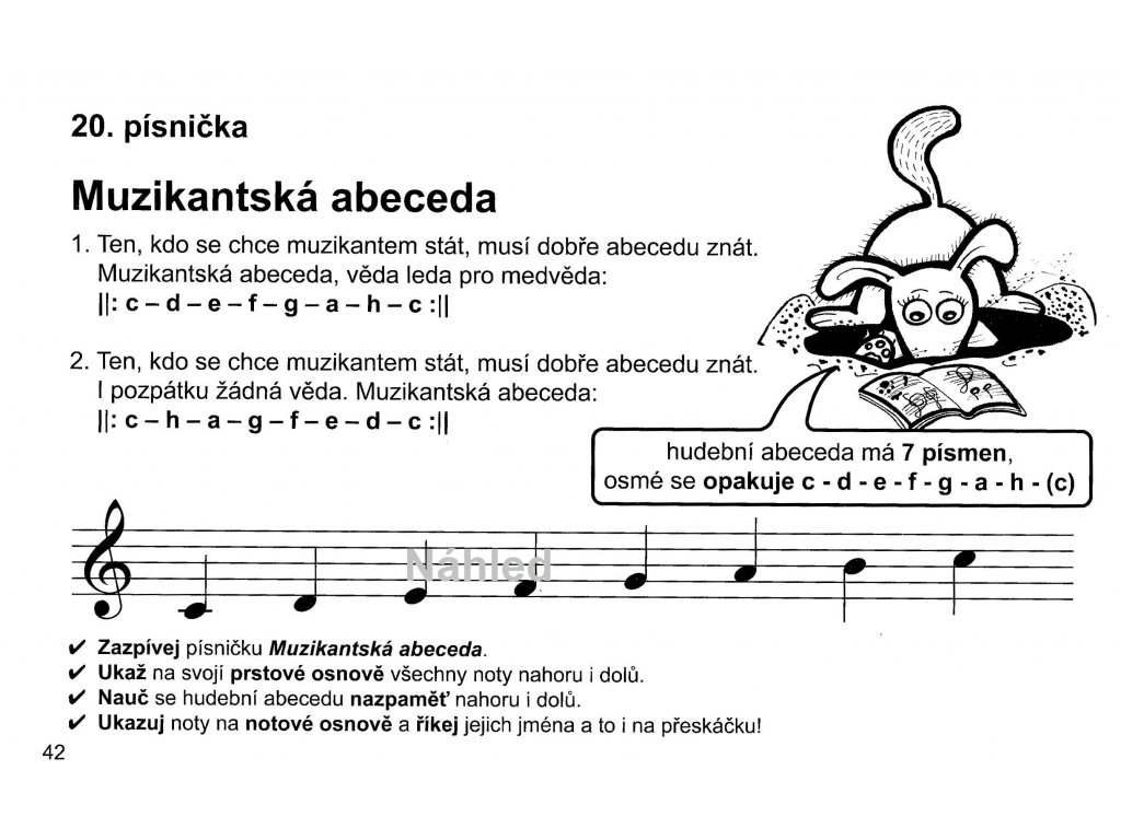 Výučba hudobnej teórie sa opiera o jednoduché didaktické a autorské piesne, medzi ktoré sú vložené známe aj menej známe piesne ľudové. Zošit dopĺňajú pôvabné ilustrácie Karin Skálové, ktoré budú deti rady vyfarbovať.