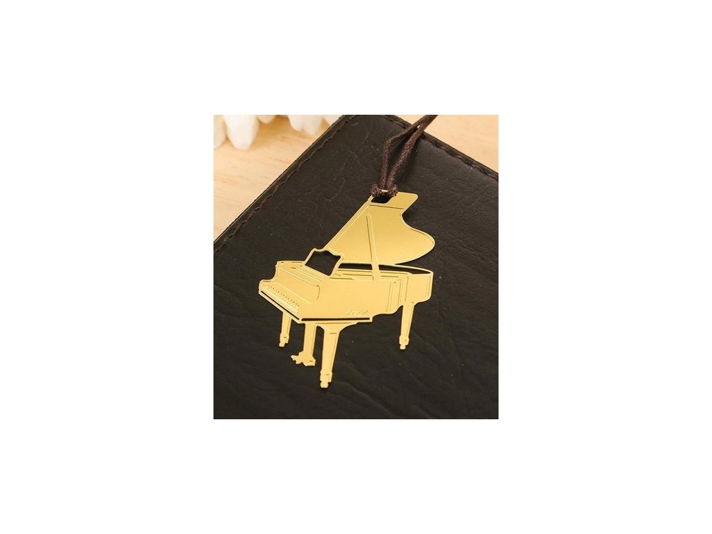 Kovová záložka s čiernou bavlnenou voskovanou šnúrkou.